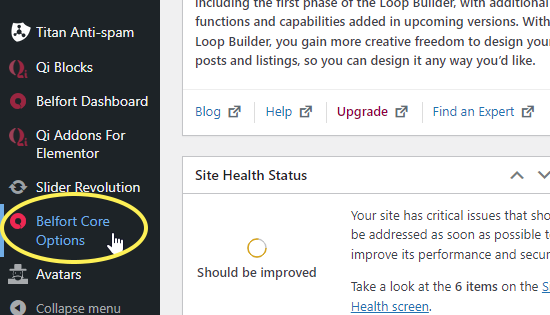 Once the installation is complete, your Belfort theme will be ready for use. Now all you need to do is navigate to Appearance > Themes and activate the Belfort theme. After you have done this, you should see Belfort Core Options appear in the left navigation bar of  your WordPress admin panel.