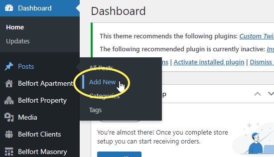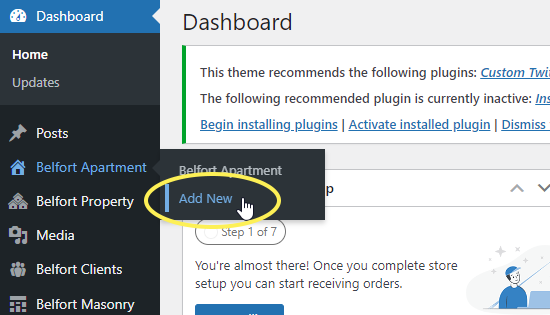 1. Navigate to Belfort Apartment > Add new from your WordPress admin panel.