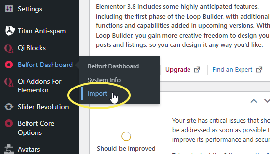 2. Navigate to Belfort Dashboard > Import