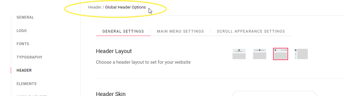 Some options, such as the header skin and background color, can be overridden on a page to page basis from a specific page’s backend. For more information on how local page settings work, please refer to the Pages section of this User Guide.