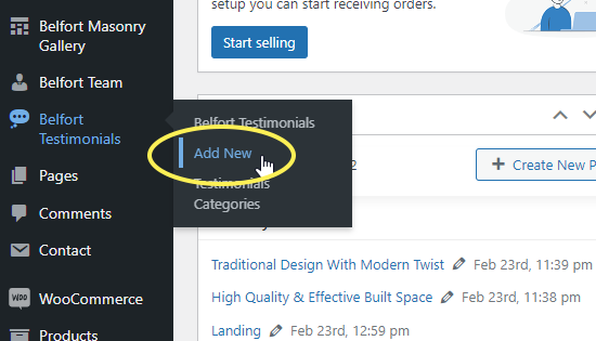 To create a testimonial, navigate to Testimonials > Add New from your WordPress admin panel and enter a title for your testimonial in the text field near the top of the screen.
