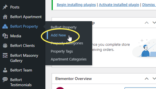 1. Navigate to Belfort Property > Add new from your WordPress admin panel.