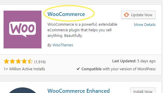 2. Type “WooCommerce” in the search field.