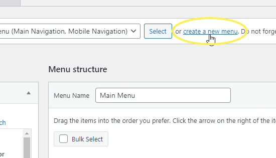 To create a new menu, navigate to Appearance > Menus from your WordPress admin panel. Enter a name for your new menu and then click Create Menu.