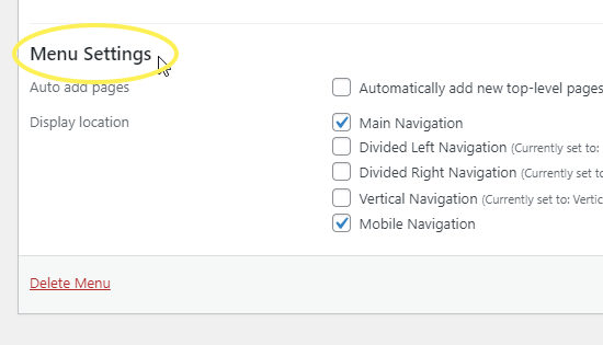 In the Menu Settings section (which is located underneath the Menu Structure section), check the checkbox next to Main Navigation and click Save Menu. This will activate the menu you have just created, and you should now see a functional menu in your header.